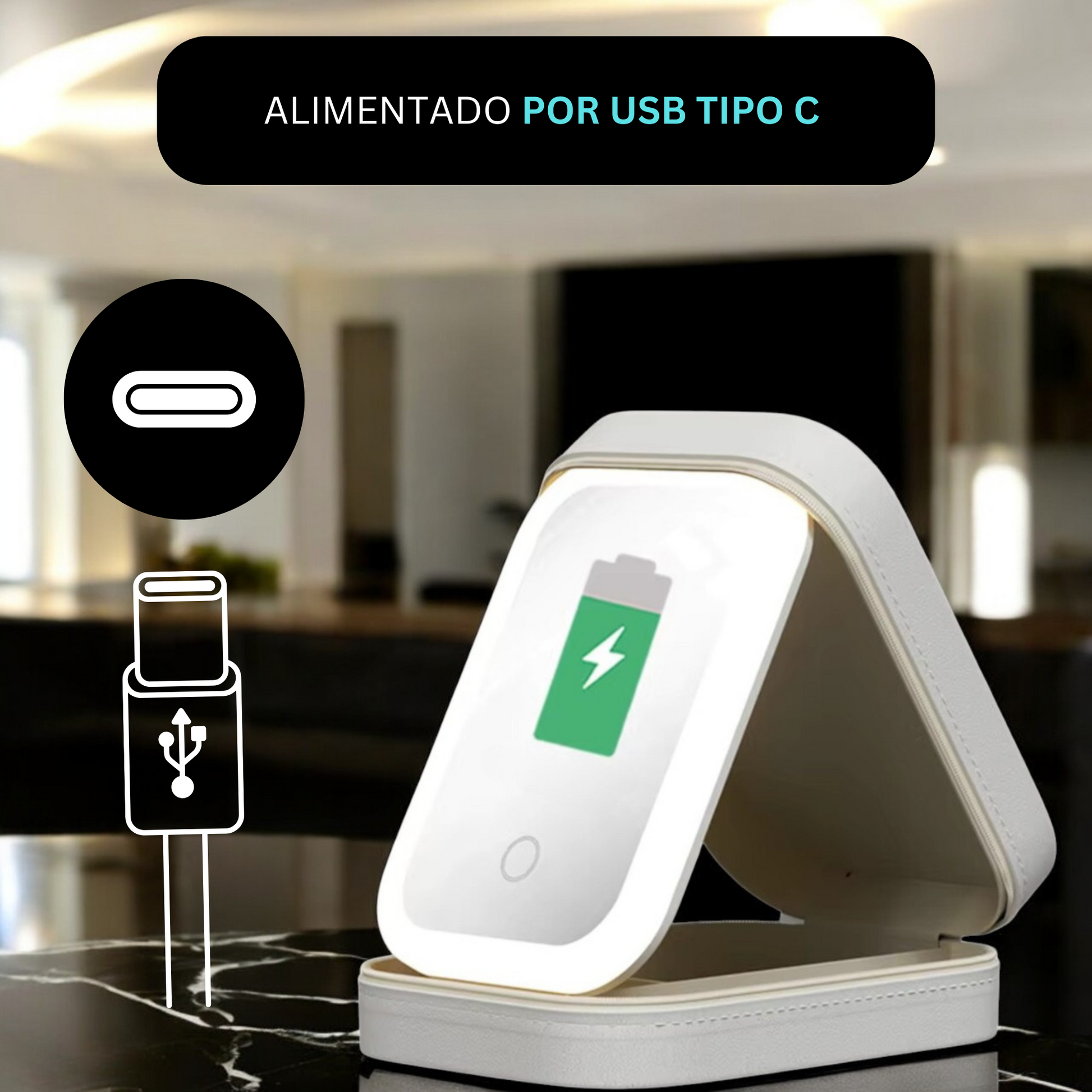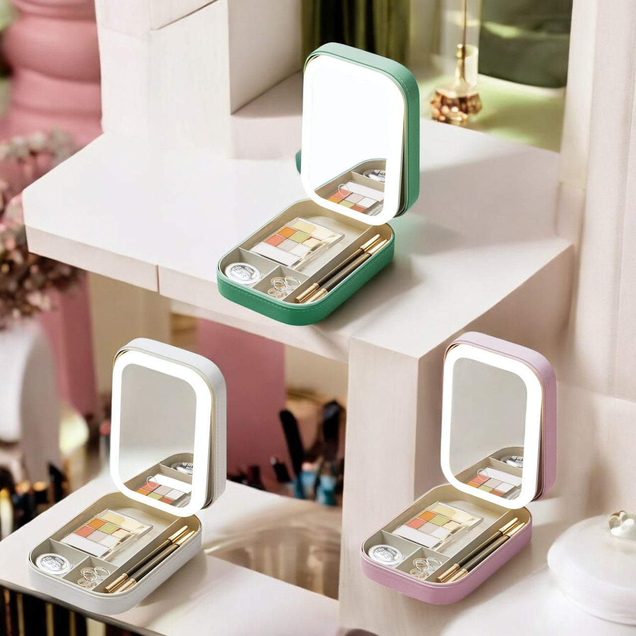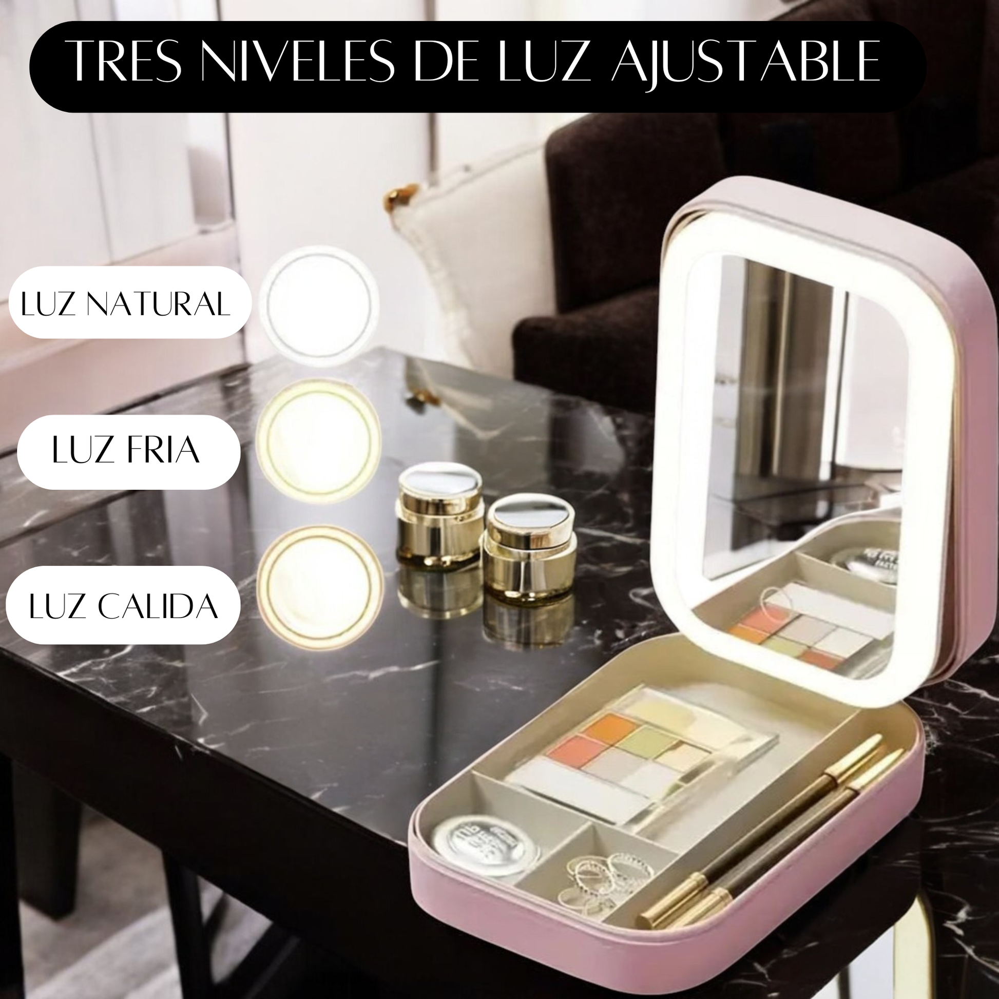 ¿Viajes con poco espacio? ¿Salidas rápidas sin tiempo para maquillarte? ¡Tenemos la solución perfecta para ti! 💡 Nuestro estuche de maquillaje con espejo y 3 tipos de iluminación LED es práctico, elegante y diseñado para simplificar tu vida.